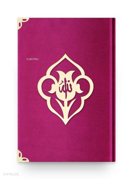 Çanta Boy Kadife Kuran-ı Kerim (Fuşya Pembe-Güllü-Mühürlü)