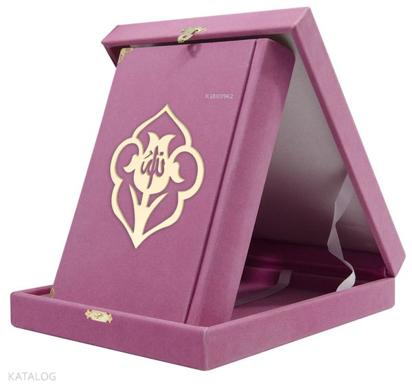 Kadife Kutulu Kuran-ı Kerim (Çanta Boy, Güllü, Pembe)