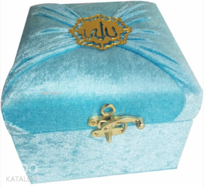 Mühürlü Cep Boy Kadife Sandıklı Mealli Kuran-ı Kerim Mavi